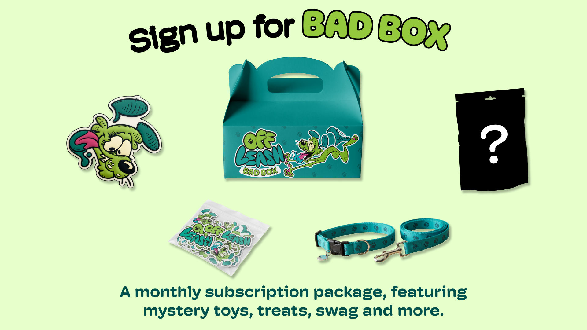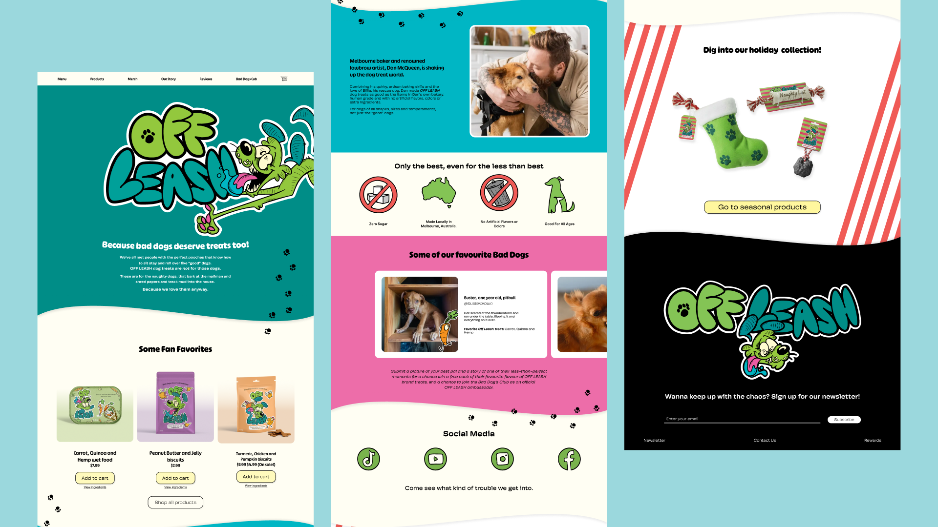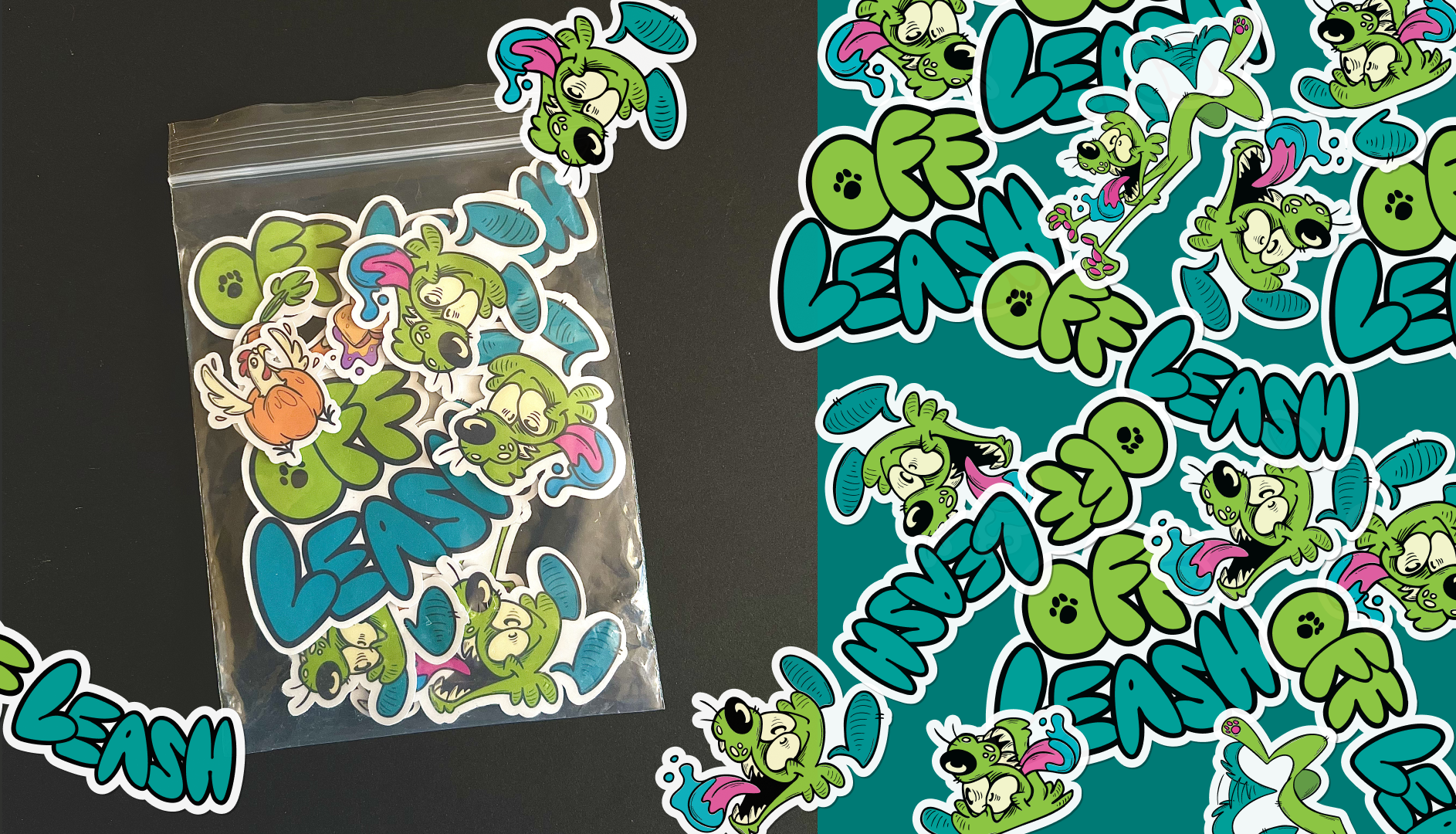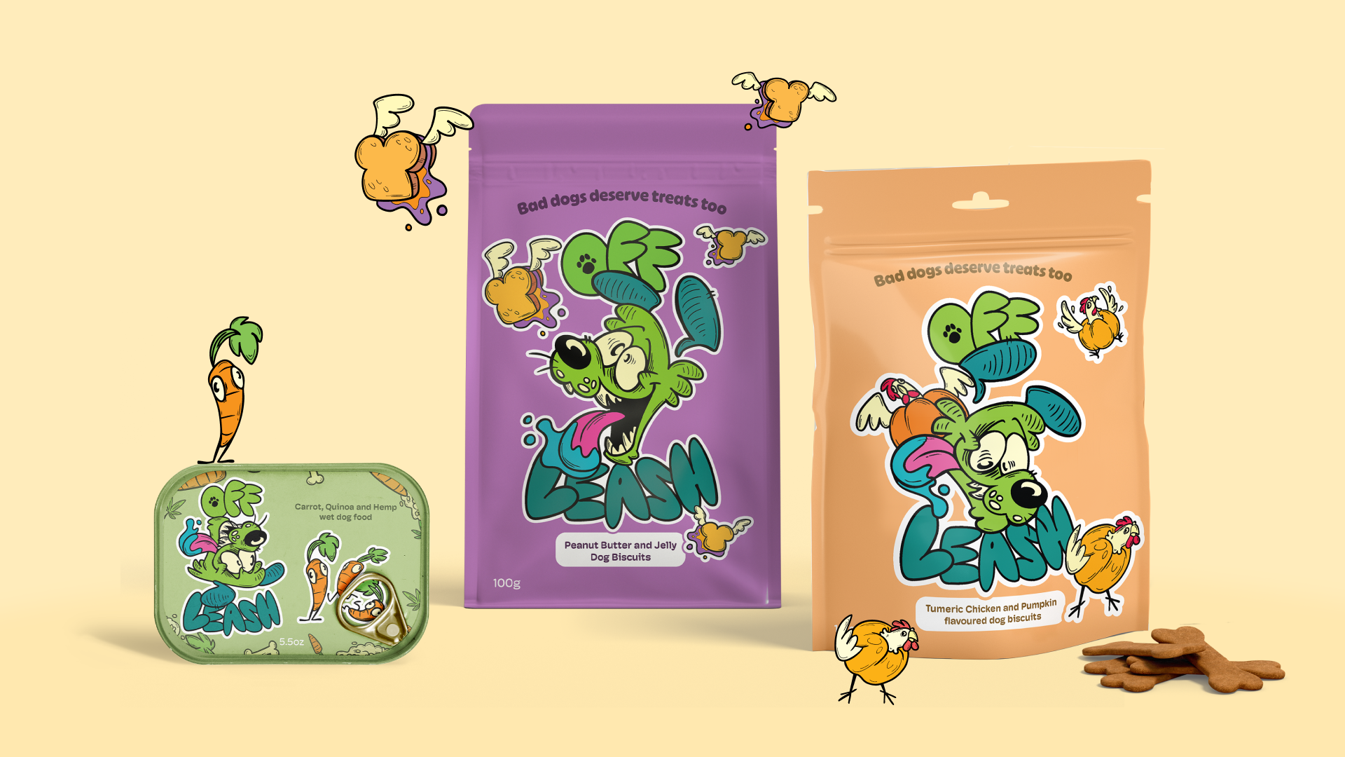Inspired by the rebellious nature and quirky personality of the “Low Brow”/Pop surrealism art movement, OFF LEASH treats are here to shake up the world of dog supplies for good.